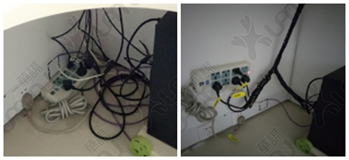 電線雜亂無章,不易清掃和分辨,且存在安全隱患。